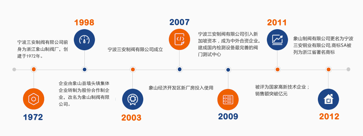 1972:寧波三安制閥有限公司前身為浙江象山制閥廠,創建于1972年。