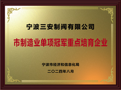 • 寧波市單項(xiàng)冠軍培育企業(yè)