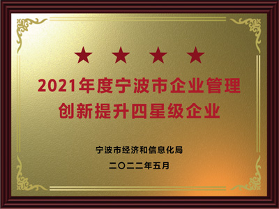 • 2021年度寧波市企業(yè)管理 創(chuàng)新提升四星級(jí)企業(yè)