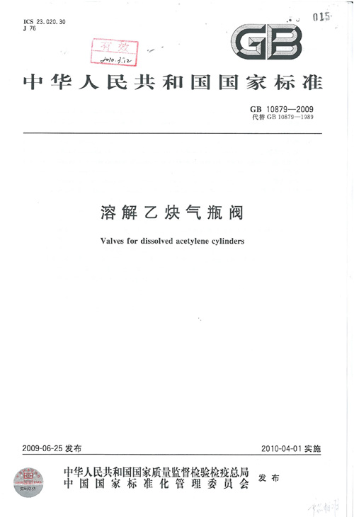 • (參與)GB10879-2009溶解乙炔氣瓶閥