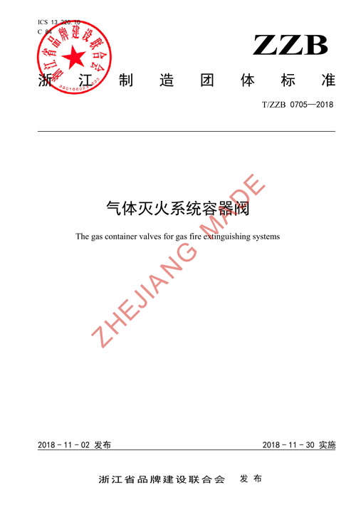 • (主持)“浙江制造”標準 0705—2018《氣體滅火系統容器閥》