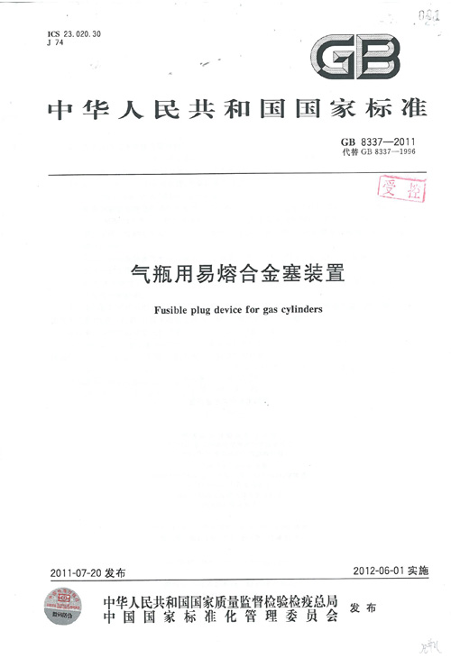 • (主持)GB8337-2001氣瓶用易熔合金塞裝置