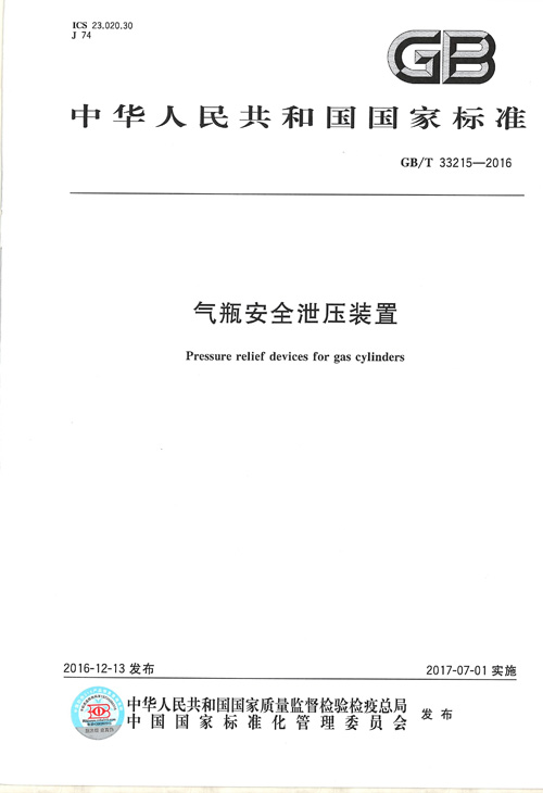 • (主持)GBT 33215-2016氣瓶安全泄壓裝置