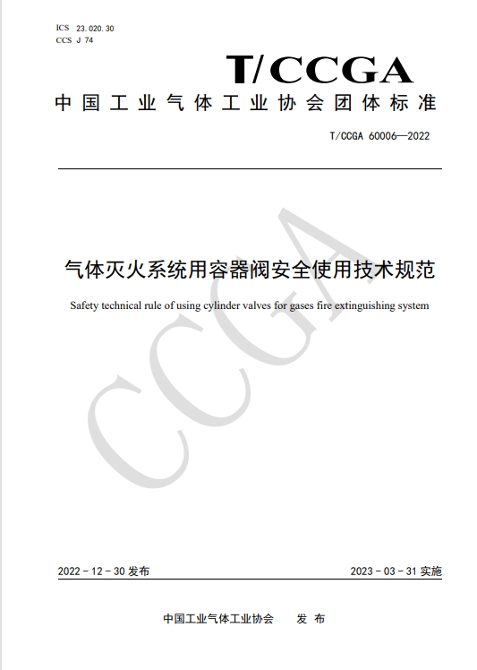 • (主持TCCGA 60006 氣體滅火系統用容器閥安全使用技術規范